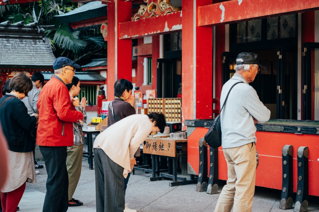 아오시마 해변 남쪽 끝에 떠 있는 아오시마는 섬 같지 않은 섬이다. 육지에서 100미터가량 떨어진 섬까지 도보교로 연결돼 있어 걸어서 갈 수 있고, 열대 식물이 울창하게 우거져 멀리서 보면 작은 숲처럼 보이기도 한다. 둘레 1.5킬로미터의 아담한 섬에 사람들의 발길이 이어지는 이유는 두 가지. ‘도깨비의 빨래판(鬼の洗濯板)’이라 불리는 바위 지형과 아오시마 신사(青島神社) 때문이다. 일본의 국가천연기념물로 지정된 도깨비의 빨래판은 섬 주위로 펼쳐져 있는 독특한 바위 지형이다. 수백만 년 전 융기한 해저 수성암(水成巖)이 파도에 깎여 돌기와 홈이 규칙적으로 반복되는 지금의 모습이 되었다. 섬 입구를 지키는 붉은 도리이를 지나 안쪽으로 걸음을 옮기면 야자수에 둘러싸인 이국적인 분위기의 신사가 모습을 드러낸다. 일본 신화 속 부부신을 모신 곳으로, 연애와 결혼, 가정의 평안을 기원하는 이들의 성지다. 섬 전체를 신성한 땅으로 여겨 일반인의 출입의 금지하던 과거와 달리 현재는 미야자키를 대표하는 관광 명소가 되었지만 신비로운 분위기는 여전하다.
