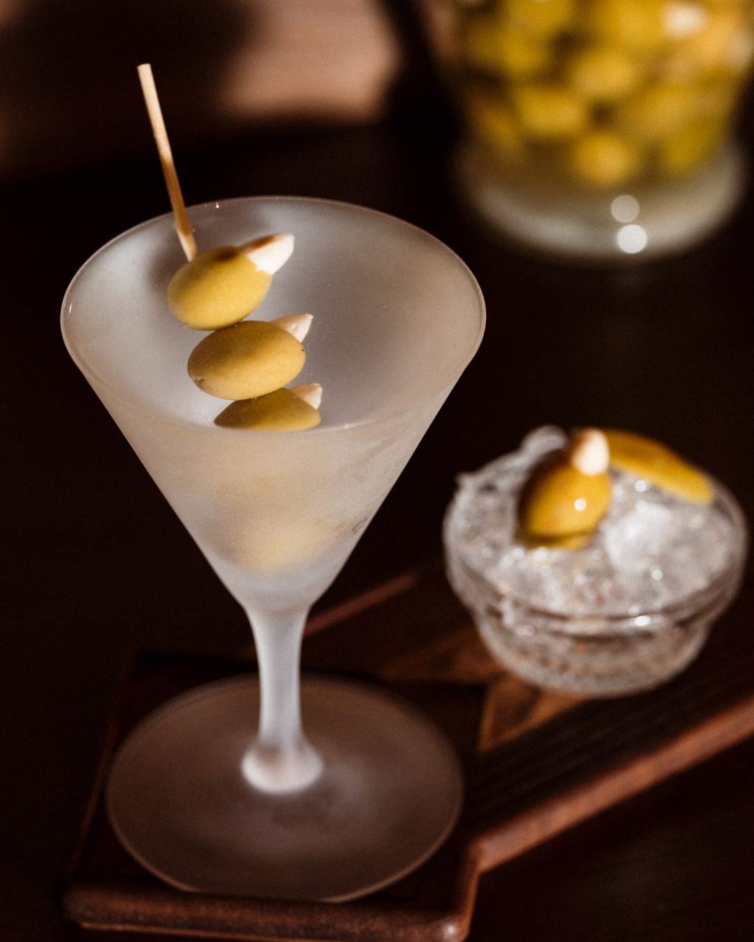 미리 희석해 냉동실에 넣어두었다가 차가운 잔에 담아내는 레오네 마티니(Leone Martini). 이탈리안 진과 마르살라(시칠리아 마르살라에서 생산되는 강화 와인), 오렌지 블로섬 워터를 조합하고 아몬드를 넣은 올리브로 장식한 정교한 칵테일이죠. 이탈리아의 뿌리를 가장 잘 담고 있는 메뉴예요.
